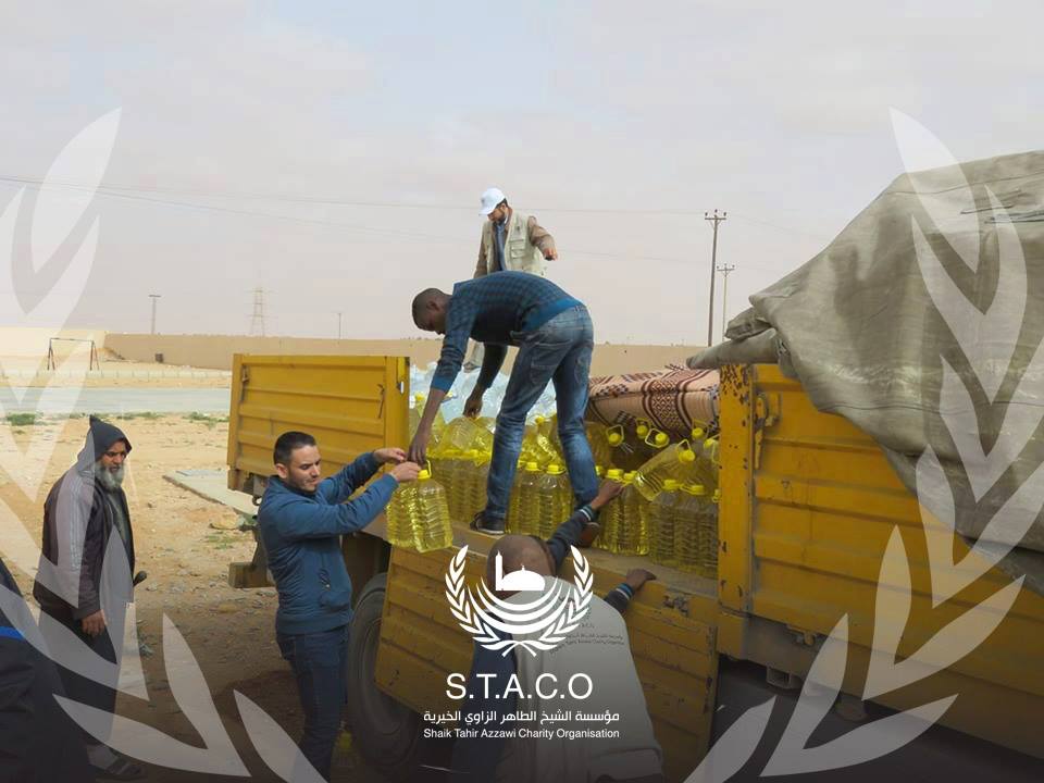 In light of the difficult conditions experienced by the people of Tawergha, the Sheikh Al-Taher Al-Zawi Charitable Foundation distributed 500 food baskets represented in the necessary supplies to the displaced Tawerghans in the Qararat Al-Qatf area, located 87 km north of Bin Walid, and its road connects the coastal road to the east and south of Tawergha. And that after the faltering return to their area, which was called by the President of the Presidential Council of the Government of National Accord.