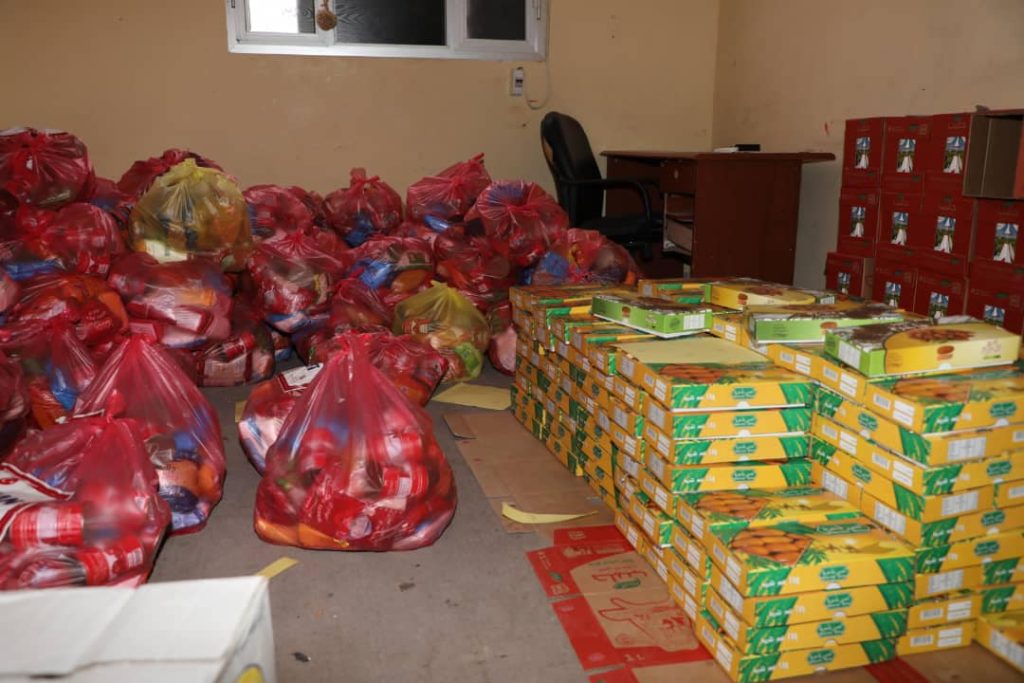 By distributing food baskets representing the basic needs of approximately 1,250 families to alleviate difficulties.