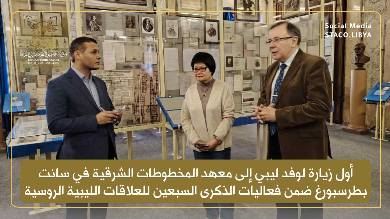 As part of the commemoration of the 70th anniversary of Libyan-Russian relations (1955–2025), an official delegation from the Sheikh Taher Azzawi Charitable Foundation (STACO), headed by Engineer Salem Al-Qamoudi, Chairman of the Foundation’s Board of Directors, made the first visit of its kind to the Institute of Oriental Manuscripts in Saint Petersburg, one of the most prestigious research institutions affiliated with the Russian Academy of Sciences.