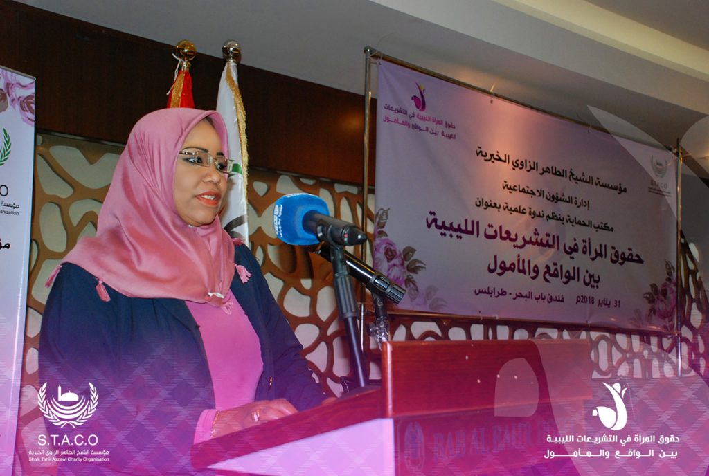 Today, the Department of Social Affairs at the Sheikh Al-Taher Al-Zawi Charitable Foundation organized a scientific symposium entitled “Women’s Rights in Libyan Legislation between Reality and Hope,” which was held at Bab Al Bahr Hotel in the capital, Tripoli.