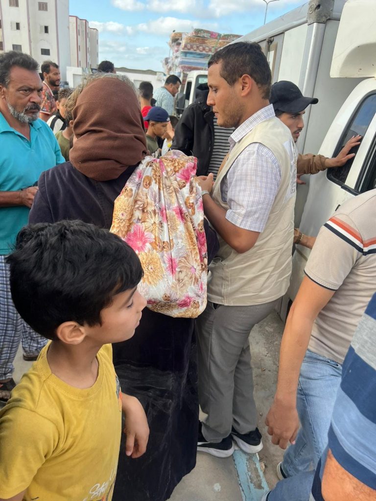Based on instructions from the Board of Directors of the Sheikh Al-Taher Al-Zawi Charitable Foundation (STACO), aid distribution operations continue for displaced families affected by floods, torrents, and the events that the city of Derna witnessed on September 11, as non-food items were distributed to those affected within the city, which require intensified efforts and coordination of work. To ensure that aid reaches those who deserve it.