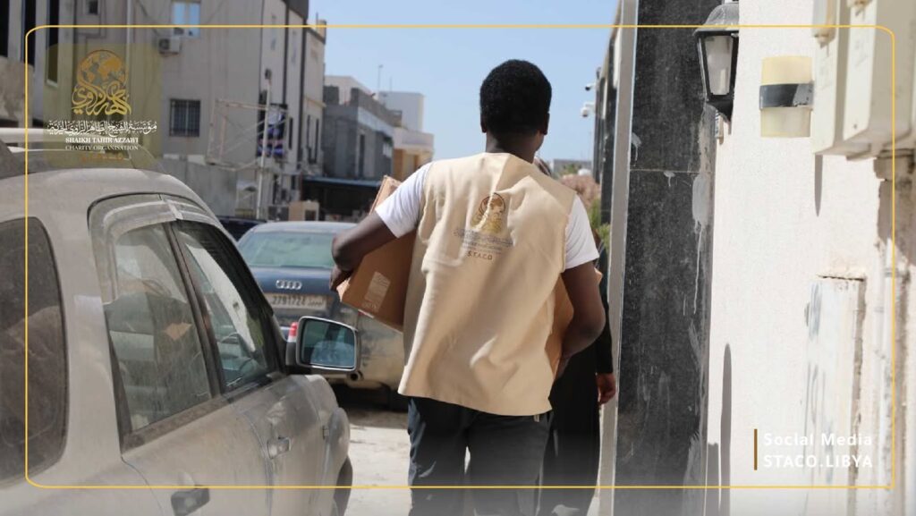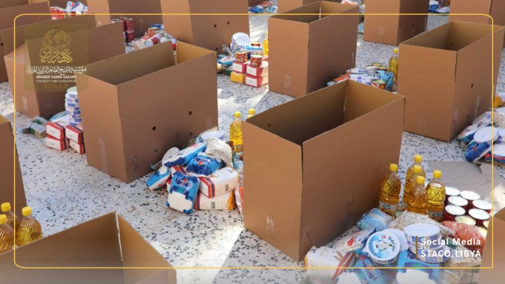 As part of its humanitarian efforts during the holy month of Ramadan, Sheikh Taher Al-Zawi Charitable Foundation (STACO) launched a food basket distribution campaign targeting needy families, low-income people and displaced people in Derna in the western region, as part of its commitment to alleviating living burdens and enhancing social solidarity during the holy month.