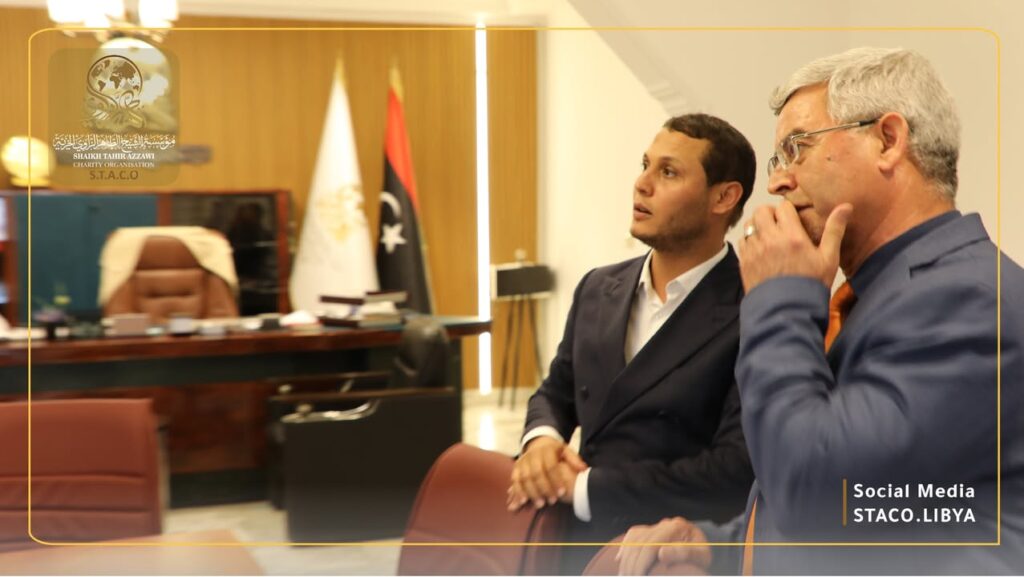 Engineer Salem Al-Qamoudi, Chairman of the Board of Directors of Sheikh Taher Al-Zawi Charitable Foundation, received today at the Foundation’s headquarters in Tripoli, His Excellency Dr. Muhammad Abdul-Malik Al-Faqih, Chairman of the Board of Directors of the Libyan Iron and Steel Company in Misurata. During the meeting, Eng. Al-Qamoudi welcomed Dr. Al-Faqih, providing a comprehensive explanation of the Foundation’s activities in the charitable, relief, development, and cultural fields.