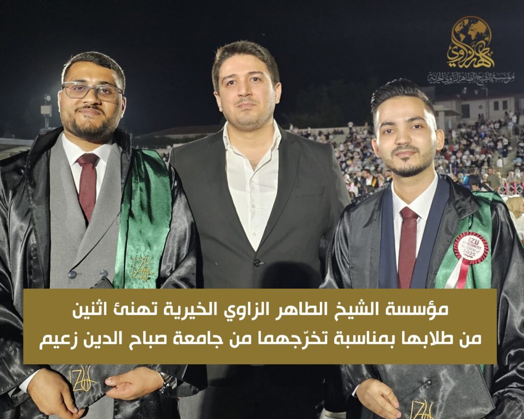 The Sheikh Al-Taher Al-Zawi Charitable Foundation extends its warmest congratulations and best wishes to two of its students on the occasion of their graduation from Istanbul Sabahattin Zaim University, after successfully completing their academic journey and obtaining their bachelor’s degrees.
