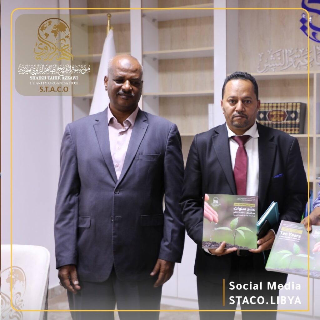 A working meeting was held today, Thursday, August 23, 2024, between representatives of Sheikh Taher Al-Zawi Charity Foundation and Mr. Siddiq Abdul-Baqi, Consul of the State of Sudan in Tripoli, in the presence of the Embassy Advisor, Mr. Muhammad Ahmed.