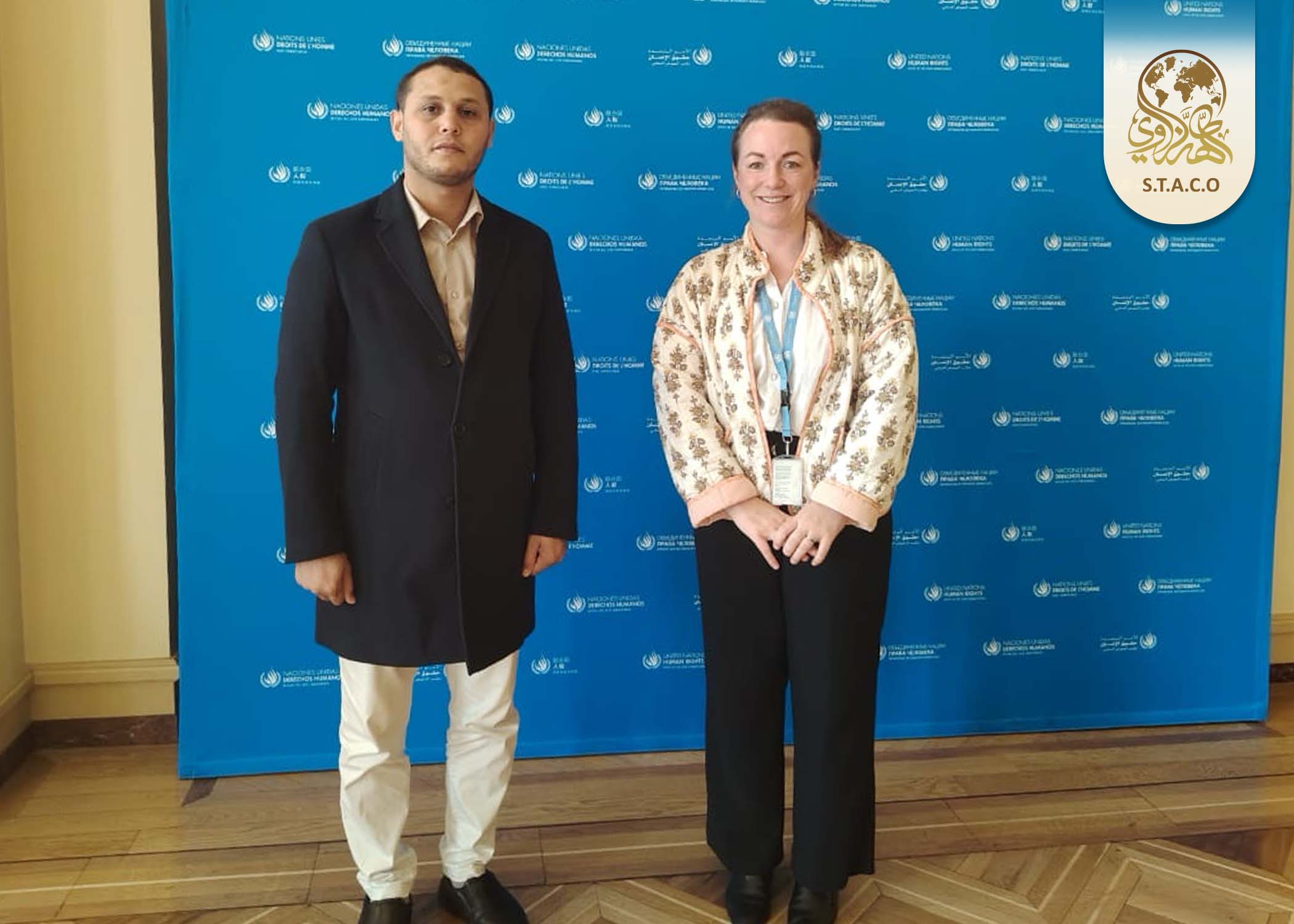 As part of its ongoing efforts to expand international partnerships and enhance its humanitarian mission, the Sheikh Al-Taher Al-Zawi Charitable Organization (STACO) held a productive meeting today in Geneva with the United Nations Voluntary Fund for Victims of Torture, administered by the Office of the UN High Commissioner for Human Rights. The meeting was attended by Eng. Salem Al-Qamoudi, Chairman of STACO’s Board of Directors.
