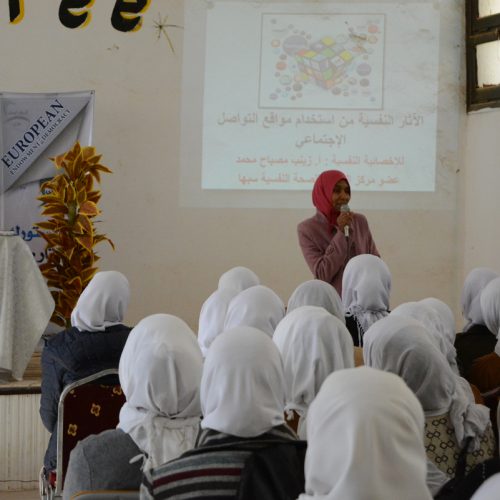 A set of axes were presented, including: Coverage of the social aspect by the social worker, A. Fatima Muhammad al-Mahdi and Psychologist, under the supervision of Professor Zainab Misbah Muhammad, in charge of the psychological support office in education, Sebha, and on the digital safety side, the stadium, Hassan Ali Habib, responsible for the psychological support team in the institution, and the legal side, lawyer Saleh Salem Hatita.