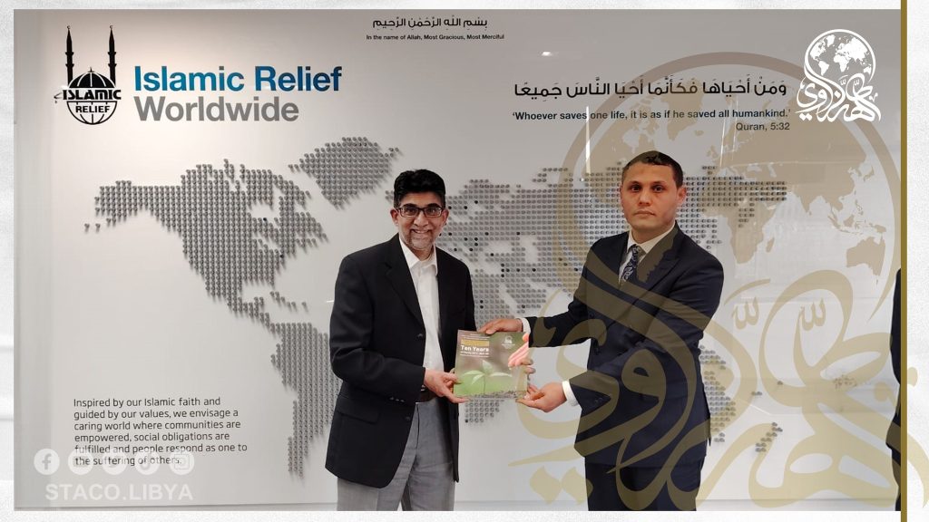 The Chairman of the Board of Directors of the Sheikh Tahir Al-Zzawi charity organization, Mr. Salem Al-Qammoudi, and the Director of Programs held an expanded meeting with senior officials at the Islamic Relief headquarters in Birmingham, to discuss ways of cooperation in the strategic partnership between the two institutions.