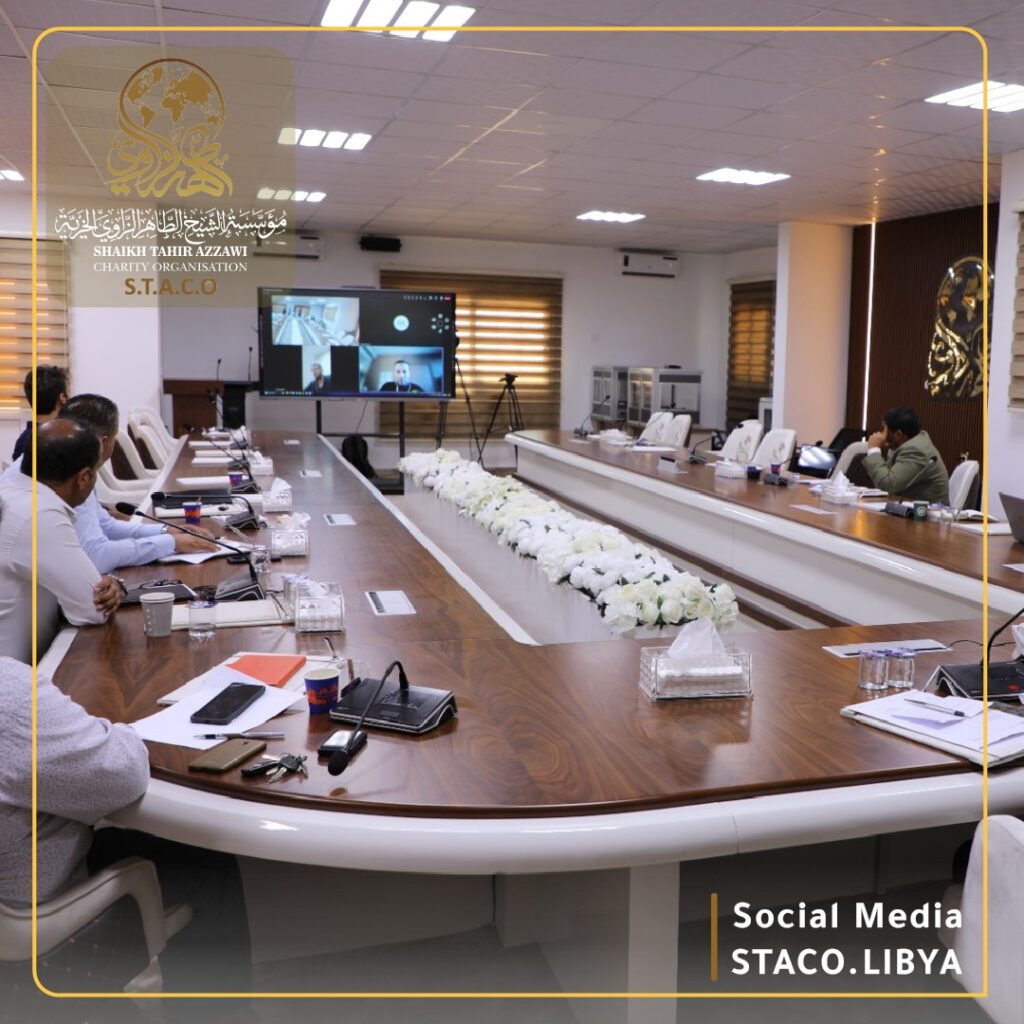 The Sheikh Taher Al-Zawi Charitable Foundation (STACO) holds a regular meeting with the presence of the heads of research centers, the program director at the foundation, the training department director, the legal department director, and a number of affiliated employees.
