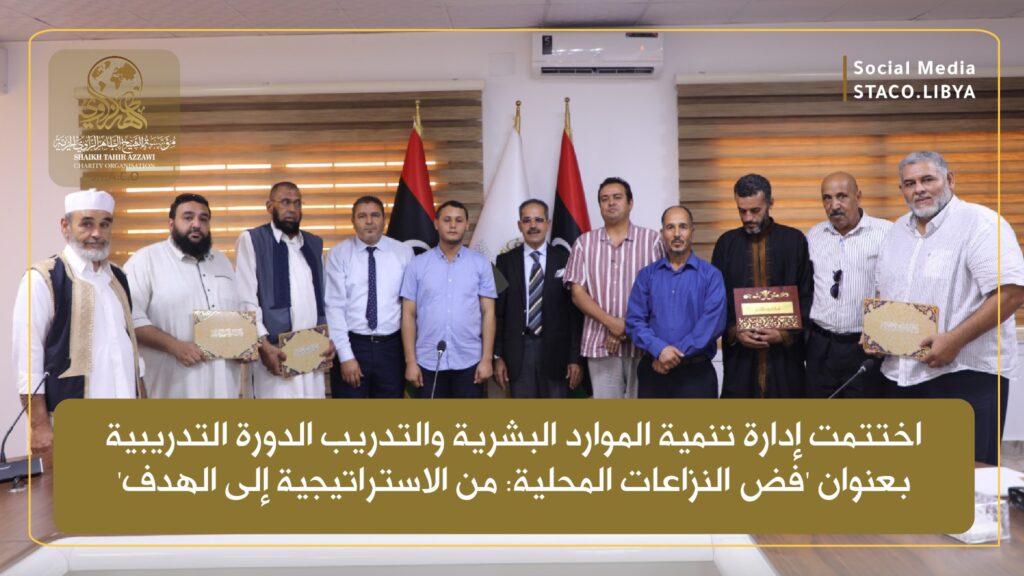 The Human Resources Development and Training Department concluded the three-day training course entitled ‘Local Conflict Resolution: From Strategy to Goal’, which focused on enhancing the capabilities of local mayors in resolving conflicts. The course was supervised by Professor Dr. Khaled Abdel Qader Al-Toumi, a strategic expert in the field of conflict resolution at the local and international levels. Local mayors from various municipalities in Libya participated in the course.