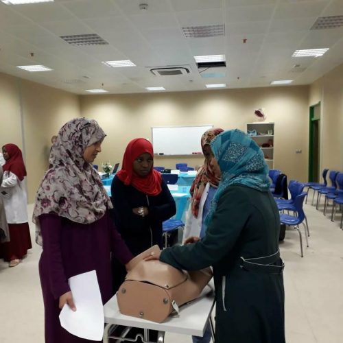 The training course targeted 14 trainees, between a midwife and a nurse, for 4 health centers (Al-Disa, Germa, Ibrik, Al-Fajeej) in Ubari, Libya, through which the trainees had a better understanding of the principles of screening screening, the principles and organization of care in low-risk pregnancy, identifying a woman High-risk, high-risk fetal identification.